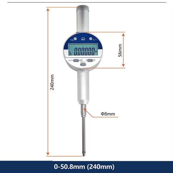 This IP67 Waterproof Digital Dial Indicator is a high-precision measuring tool designed for professional and industrial applications. It features a measuring range of 0-12.7mm (or 0-0.5 inches) with an easy-to-read LCD display, making it ideal for precise measurements in machining, quality control, and engineering. The 8mm stem diameter ensures compatibility with standard indicator stands, while the IP67-rated water and dust resistance makes it highly durable for workshop environments. Users can toggle between metric (mm) and imperial (inches) measurement units, ensuring flexibility in different applications.