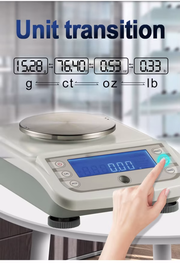The High-Precision Digital Weighing Scale is a professional-grade precision balance designed for accurate weight measurement across various applications. Utilizing advanced sensor technology and microprocessor control, this scale ensures high accuracy, stability, and ease of use for laboratory, industrial, and commercial settings.